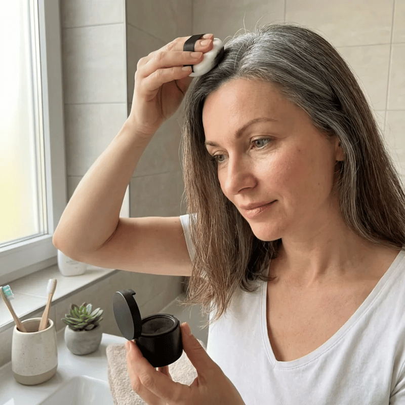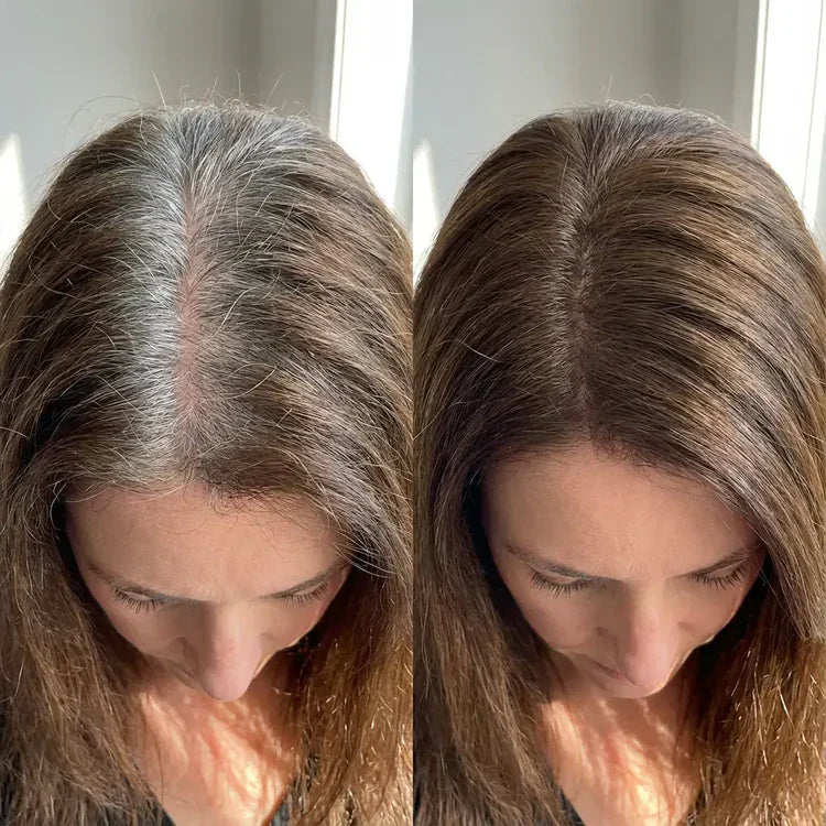 Les racines grises, les reflets ternis et les raies trop visibles disparaissent sous un voile de couleur naturel et harmonieux.