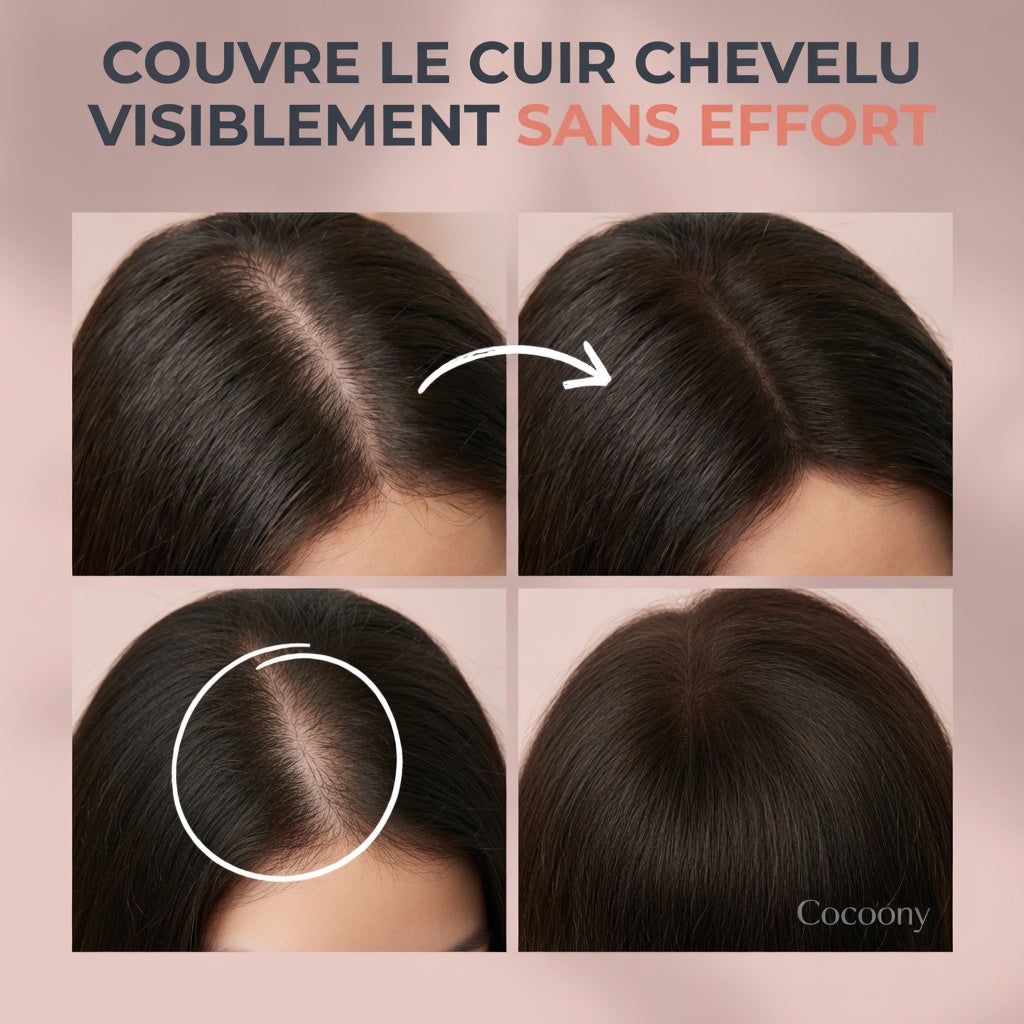 Il atténue le contraste entre les cheveux et le cuir chevelu, pour que les zones clairsemées paraissent naturellement plus denses et que la raie n’attire plus immédiatement le regard.